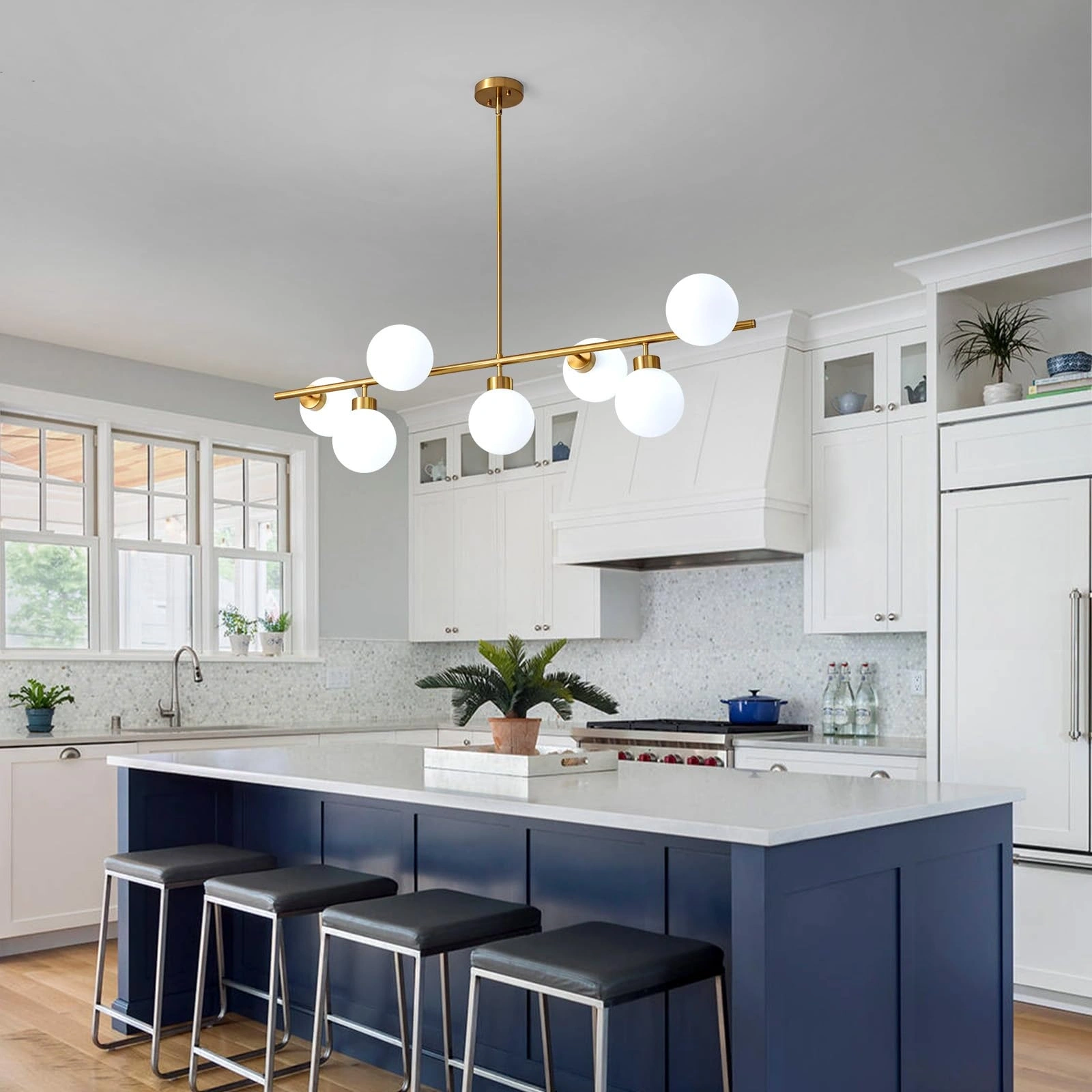 A-7017-7S Yedili Beyaz Cam Sarkıt Siyah