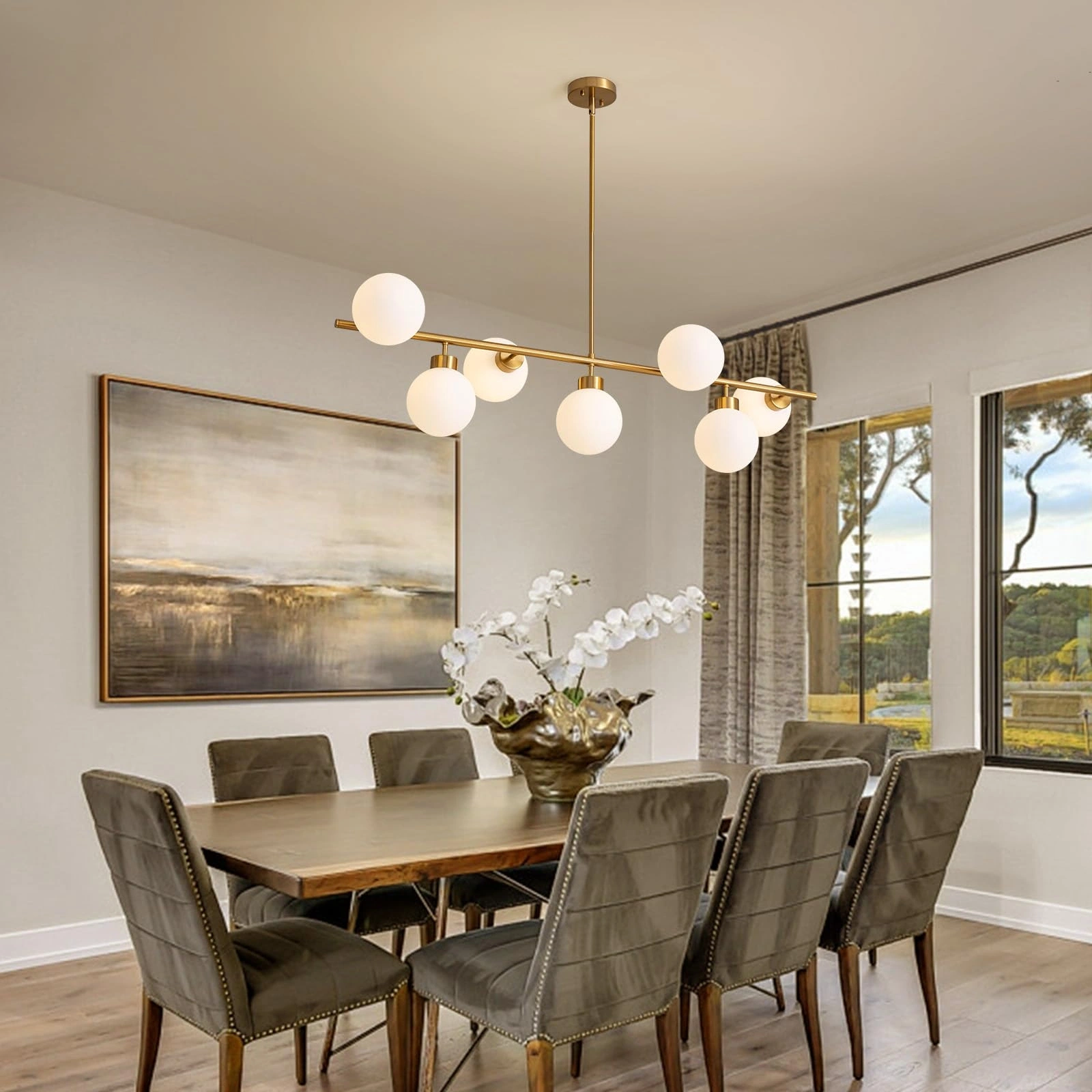 AW-7018-3S Doğal Ahşap Üzerine Üçlü Cam Sarkıt