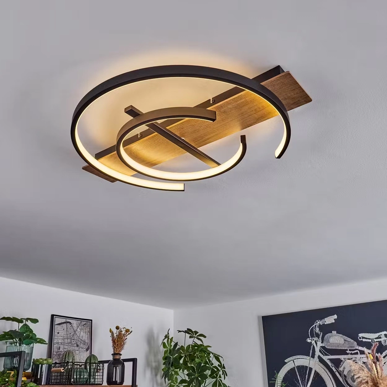 AW-4310-3S Doğal Ahşap Üçlü Çember Plafonyer