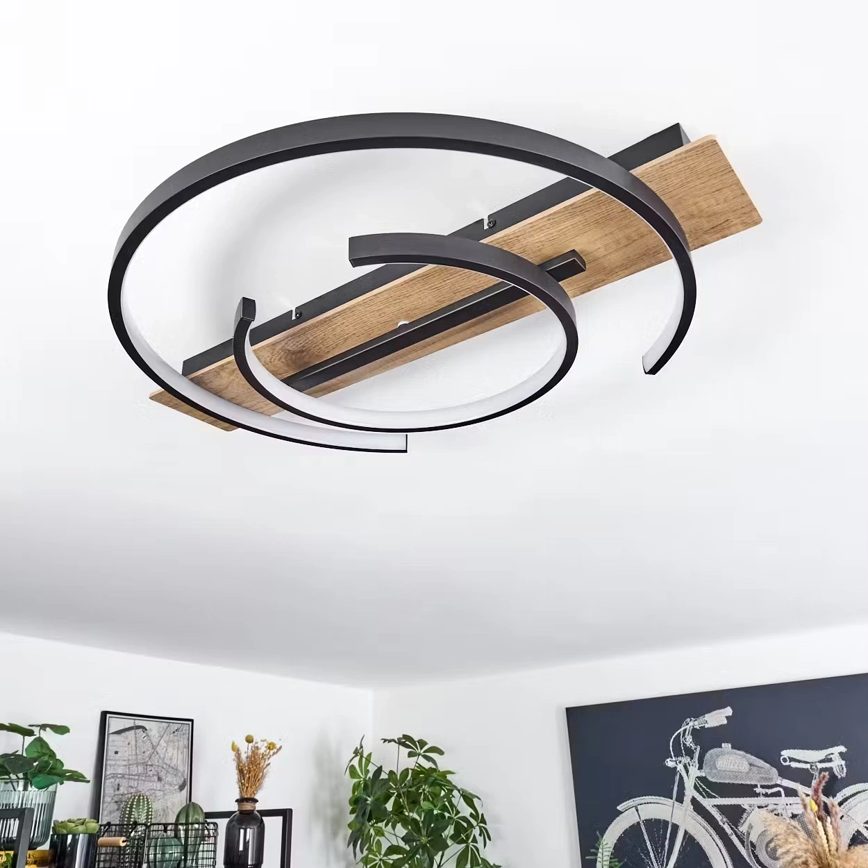 AW-4350-2 Doğal Ahşap İkili Çember Plafonyer
