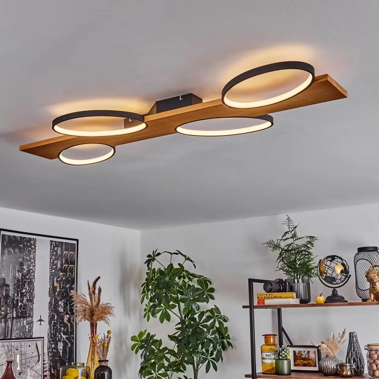 AW-4370-4S Doğal Ahşap Dörtlü Çember Plafonyer