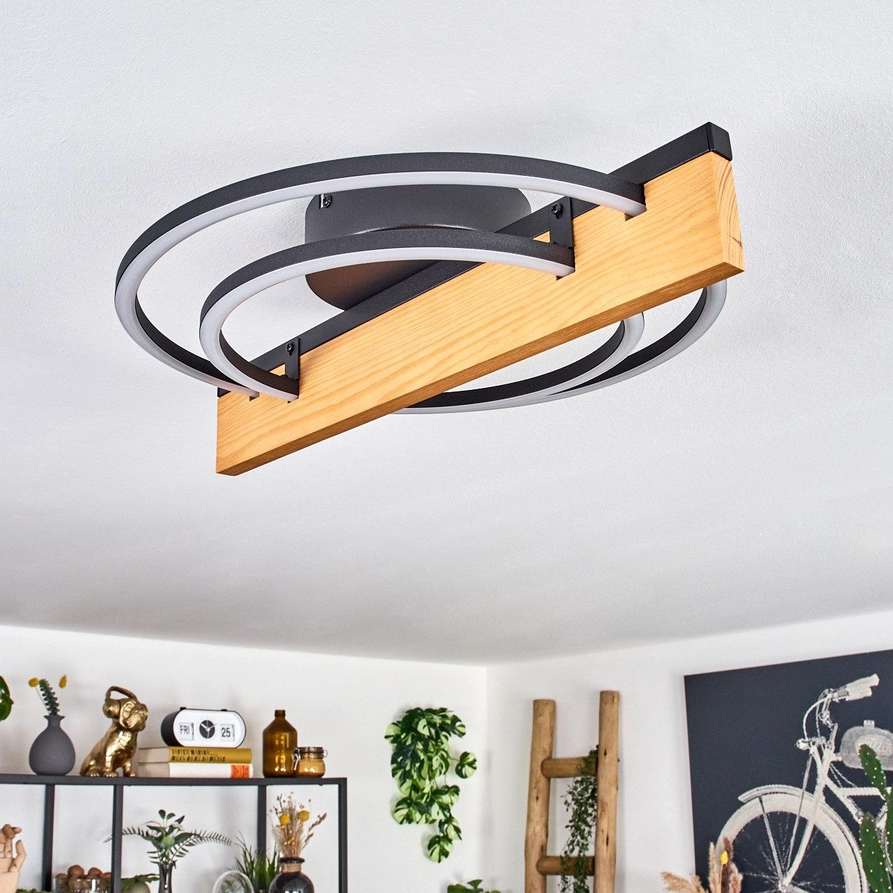 AW-4370-1S Doğal Ahşap Tekli Siyah Çember Plafonyer