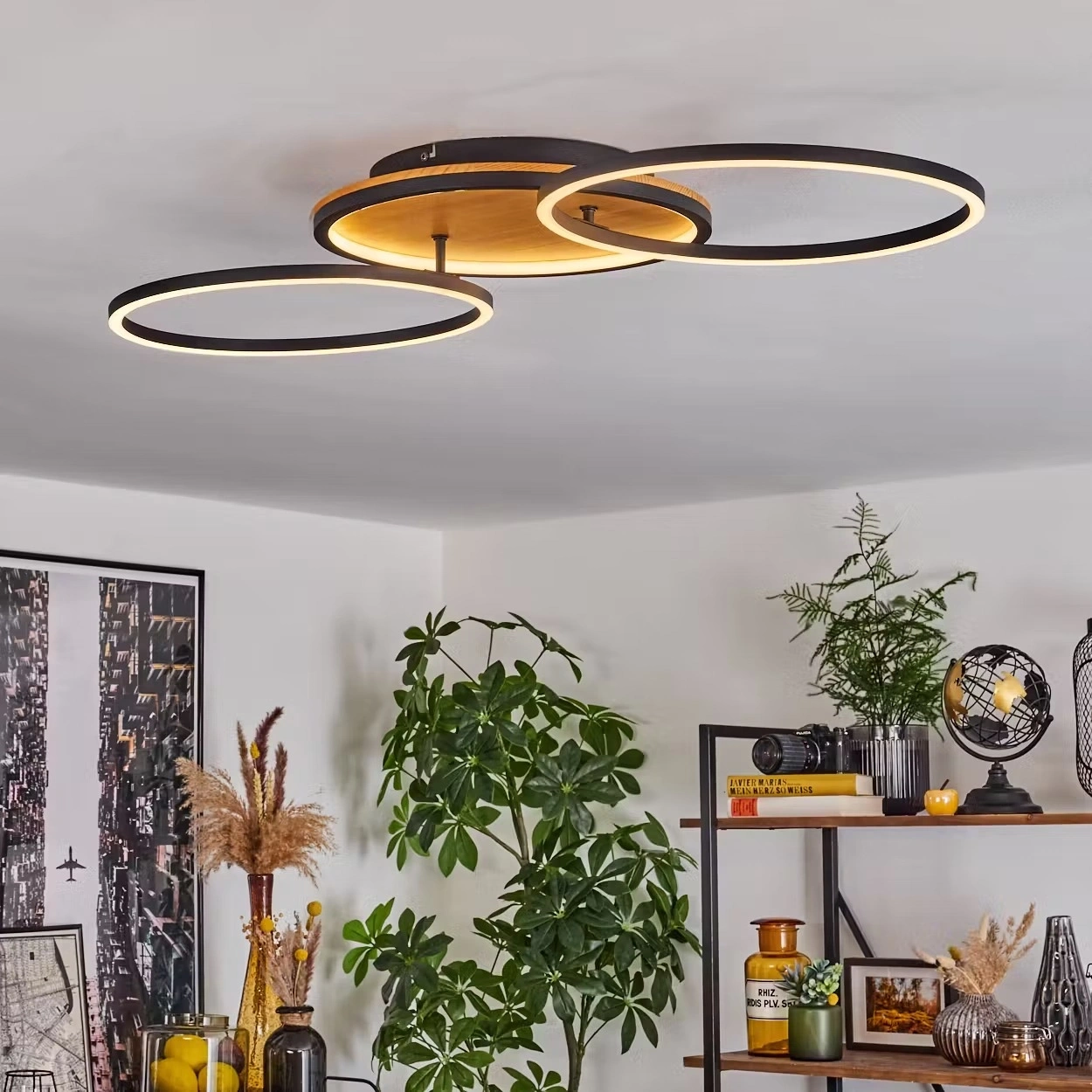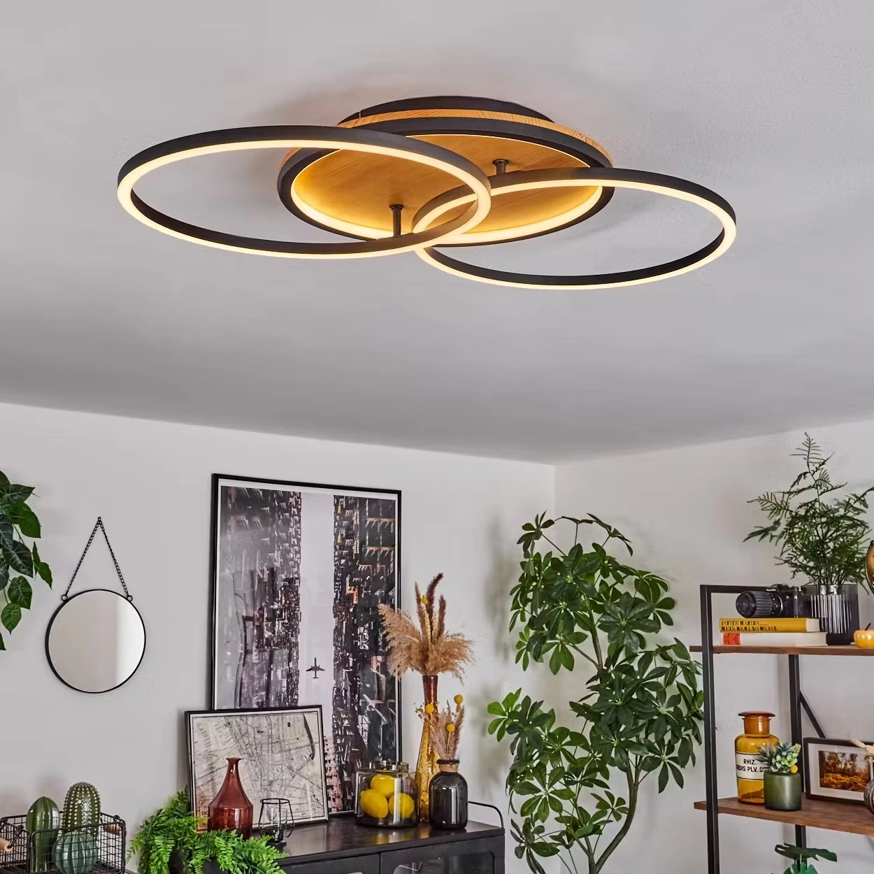AW-4360-3S Doğal Ahşap Üçlü Çember Plafonyer
