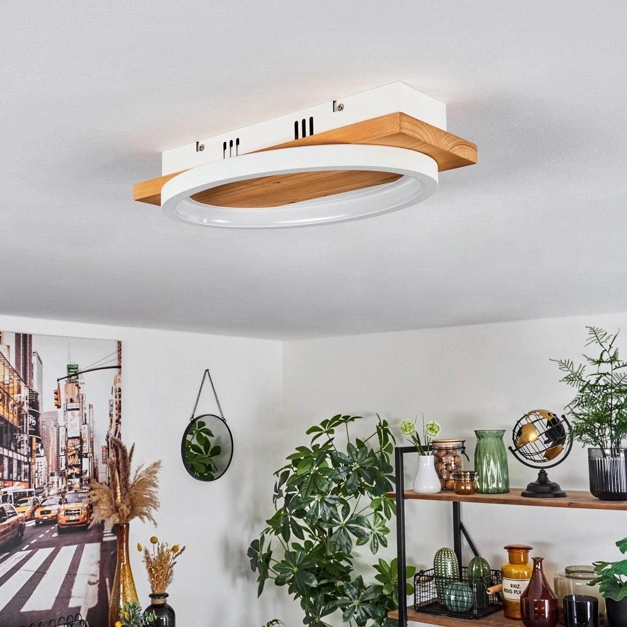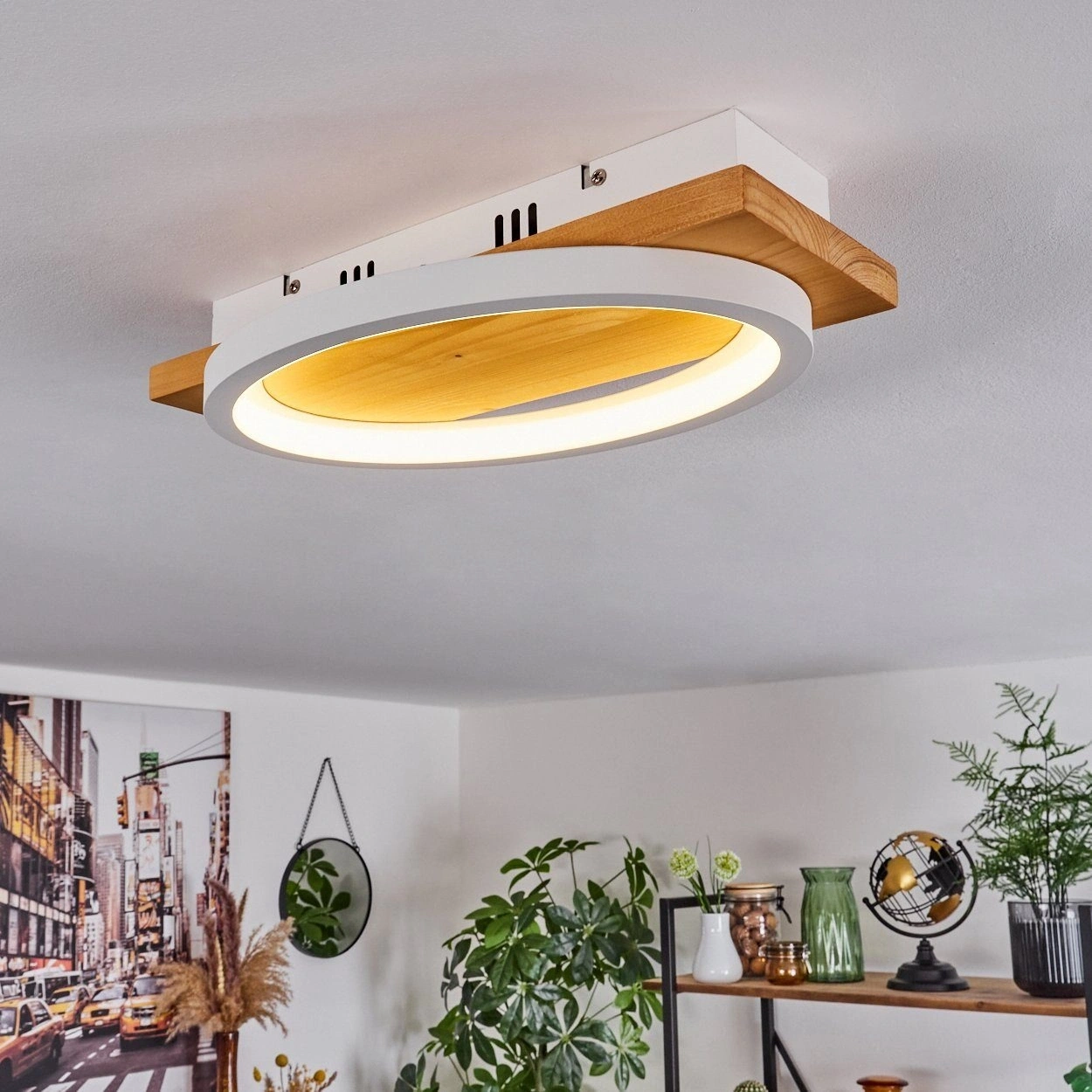 AW-4370-1B Doğal Ahşap Tekli Beyaz Çember Plafonyer
