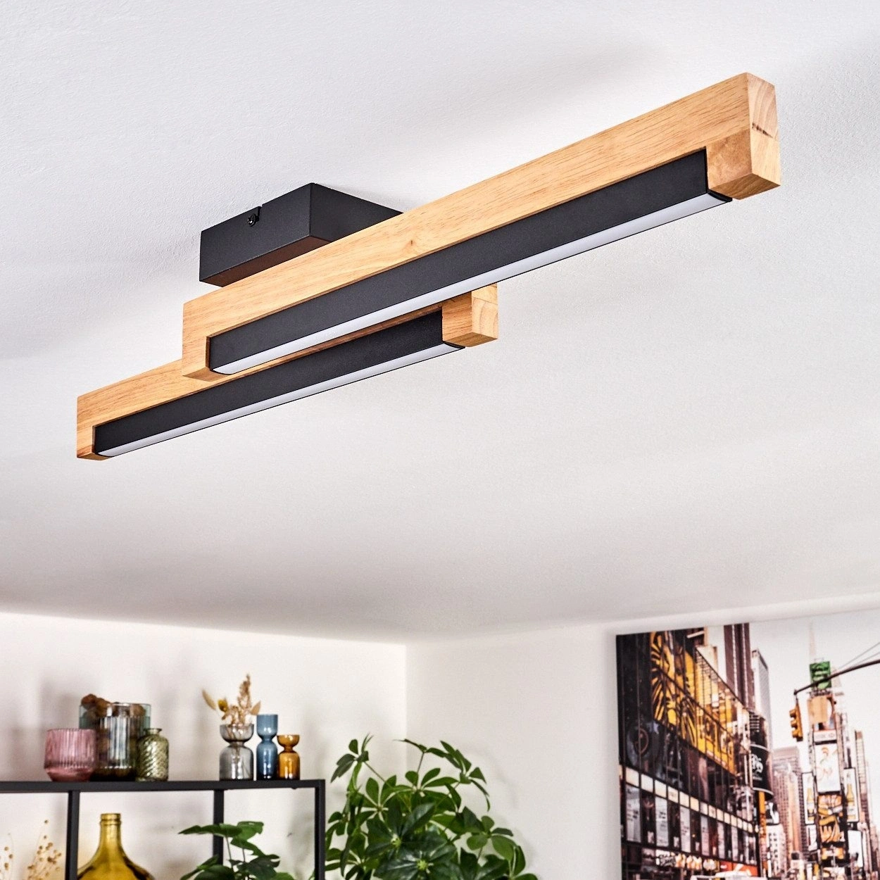 AW-4370-1S Doğal Ahşap Tekli Siyah Çember Plafonyer